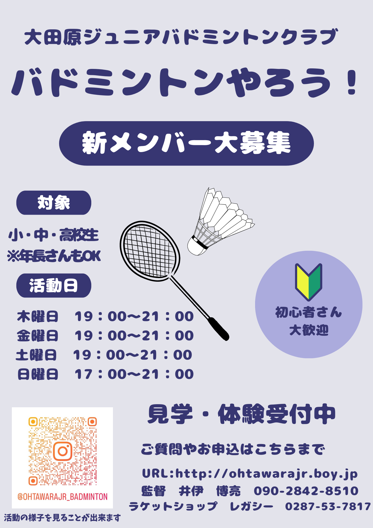 この投稿をInstagramで見る 大田原ジュニアバドミントンクラブ(@ohtawarajr_badminton)がシェアした投稿